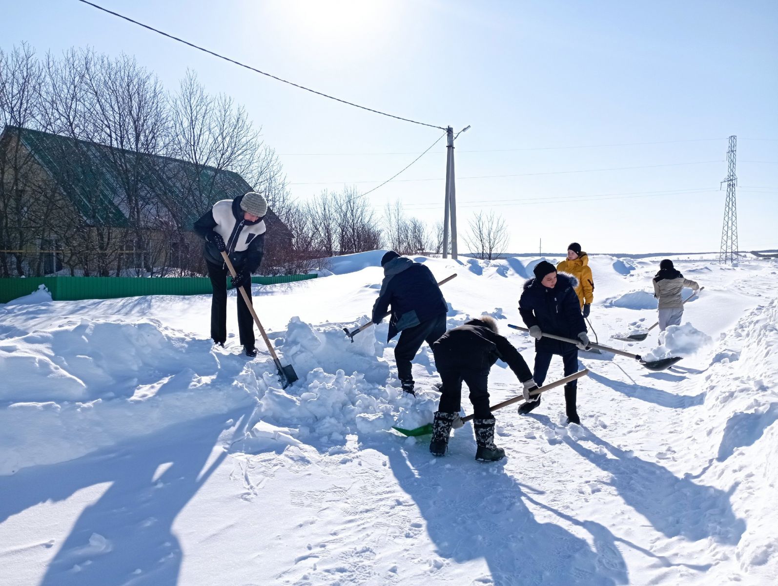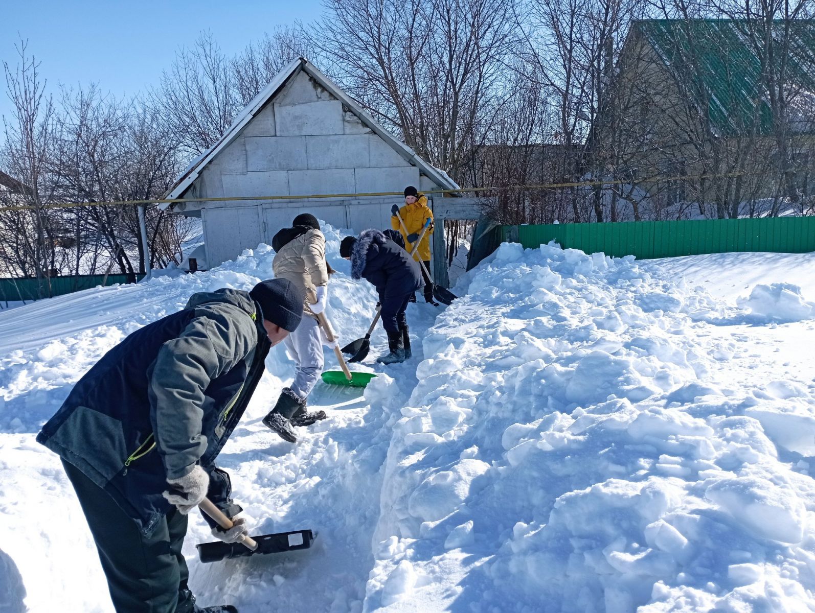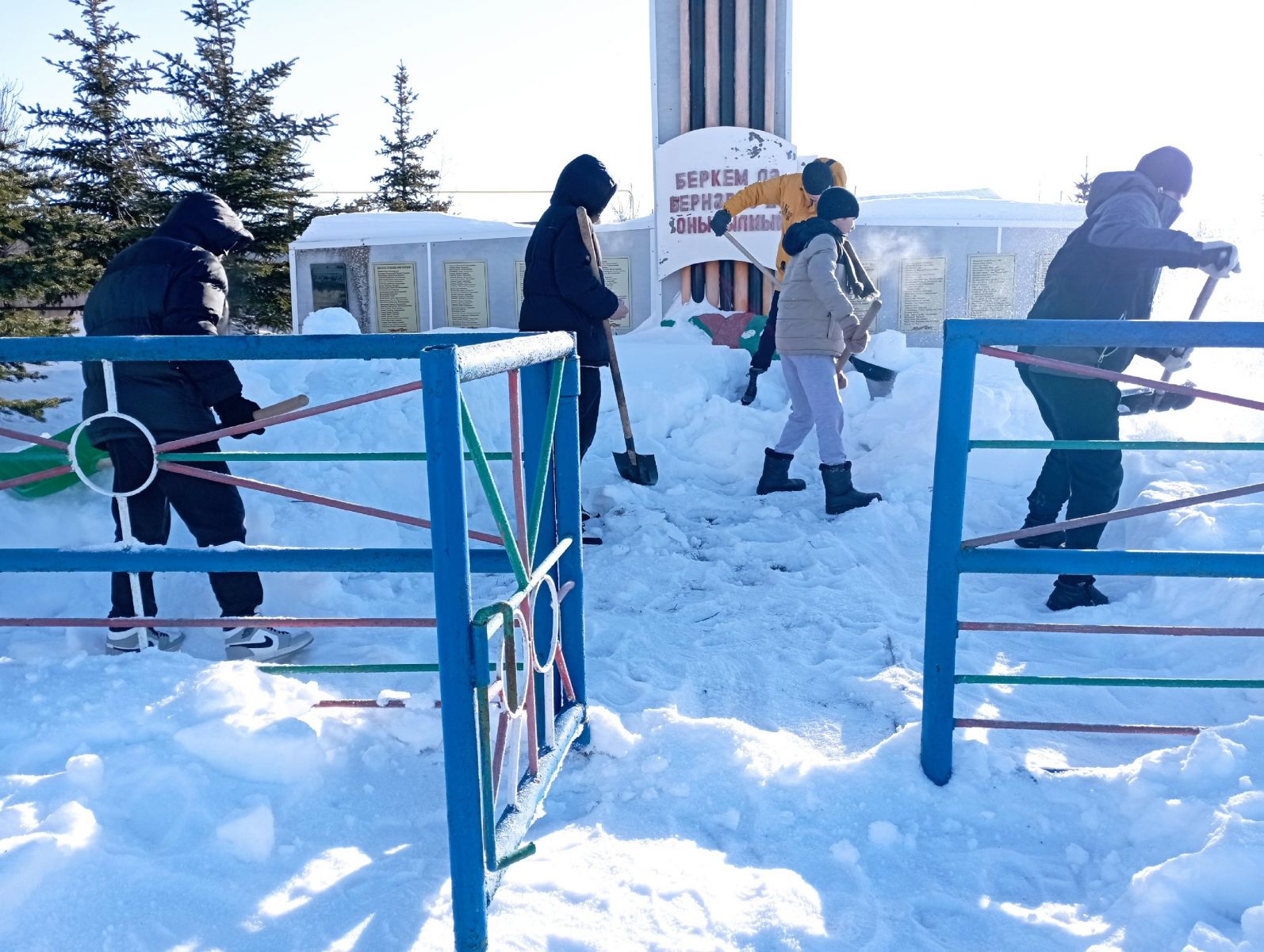 Тимурчылар отряды һәйкәл территориясен кардан арындырдылар. Шулай ук, әбиләрне шефлыкка алдылар һәм хуҗалык буенча пенсионерларга ярдәм иттеләр.