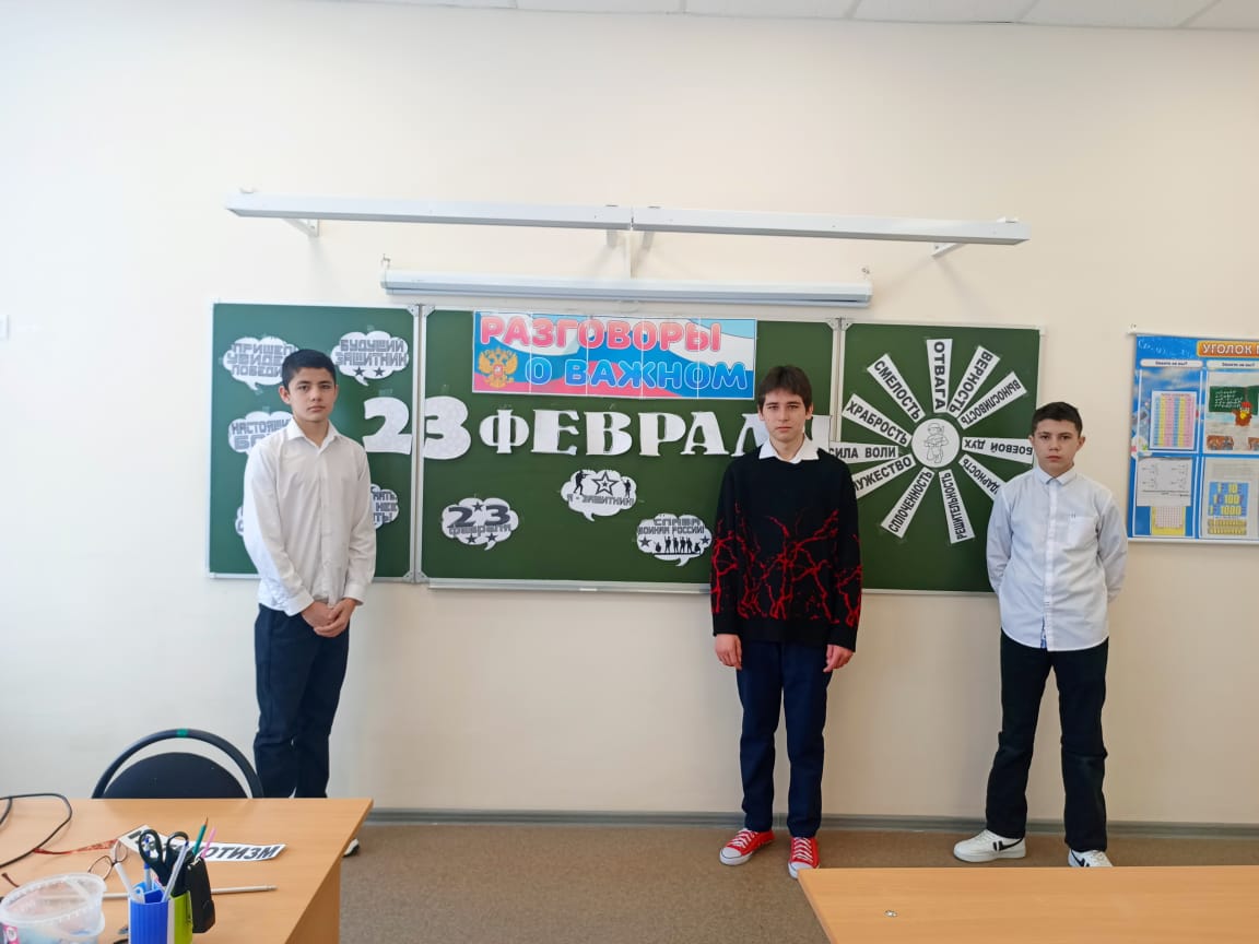 Балалар белән үткәрелгән мондый чаралар аларның күңелләренә патриотизм бөртекләре, Ватан алдындагы бурыч хисләре сала. 19 февральдә башлангыч сыйныфларда «Ватанны саклаучылар көненә» багышланган бәйрәм узды.