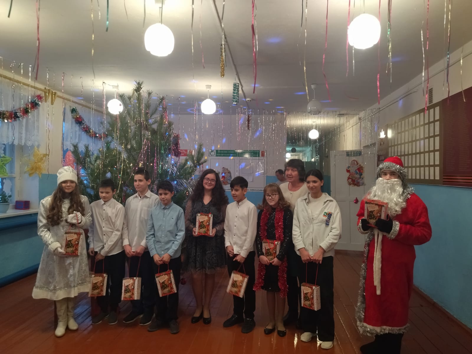 В нашей школе совместно с учащимися 1-11 классов прошел новогодний праздник. Дед Мороз и Снегурочка-разные сказочные герои. Праздник получился очень веселым, интересным. Зрители встретили сказочных героев теплыми аплодисментами.