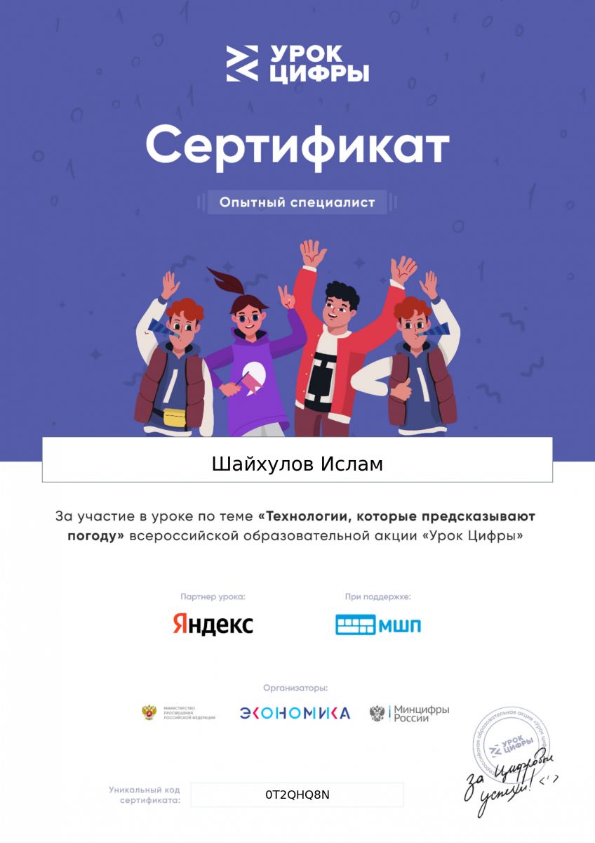 «Урок Цифры» по теме «Технологии, которые предсказывают погоду»/ "Һава торышын фаразлаучы технологияләр" темасы буенча «Саннар дәресе» 17.01.2023