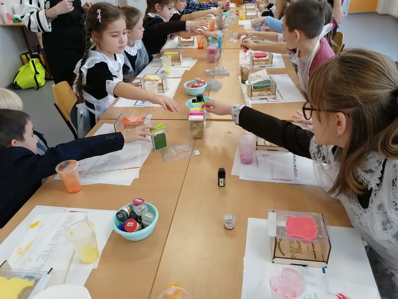 Мастера творческой мастерской "Альметрика" провели мастер-классы в нашей школе. Ученики приняли участие в мастер-классах: "Гелевая свеча своими руками", "Создание мыла ручной работы", мастер-класс «Роспись деревянного спила».