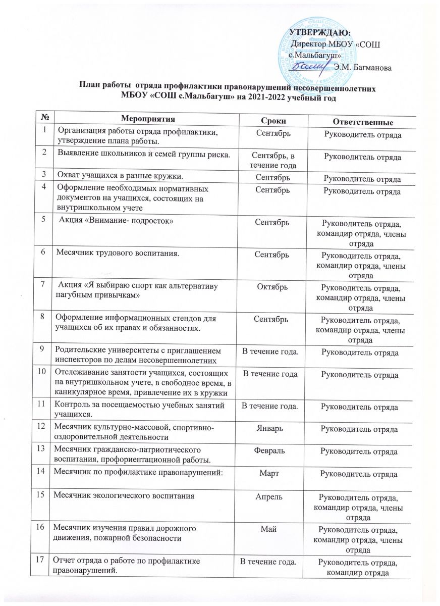 План работы отряда профилактики правонарушений на 2021-2022 учебный год