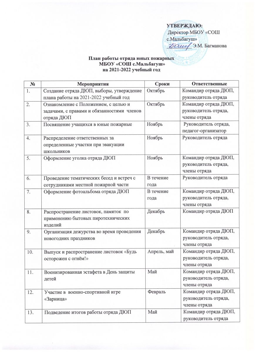 План работы отряда юных пожарных на 2021-2022 учебный год