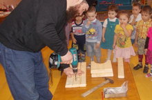 Бүген без әтиләр, алар эшли торган эшләр турында сөйләшербез. Балалар, сезнең әтиләрегез өйдә нинди эшләр эшлиләр?(әгәр балалар җавап бирә алмаса, тәрбияче үзе әйтә һәм аларны активлаштыра. Мәсәлән, сыерларга ашарга бирә, кар көри һ.б.).әйе, балалар, өйдәге авыр эшләрне әтиләр эшли. Ә менә Кадриянең әтисе Азамат абыегыз әле тагын агачтан бик матур утыргычлар да ясый белә икән. Ул- балта остасы. Ә балта остасына бик күп эш коралы кирәкБүген без әтиләр, алар эшли торган эшләр турында сөйләшербез. Балалар, сезнең әтиләрегез өйдә нинди эшләр эшлиләр?(әгәр балалар җавап бирә алмаса, тәрбияче үзе әйтә һәм аларны активлаштыра. Мәсәлән, сыерларга ашарга бирә, кар көри һ.б.).әйе, балалар, өйдәге авыр эшләрне әтиләр эшли. Ә менә Кадриянең әтисе Азамат абыегыз әле тагын агачтан бик матур утыргычлар да ясый белә икән. Ул- балта остасы. Ә балта остасына бик күп эш коралы кирәк