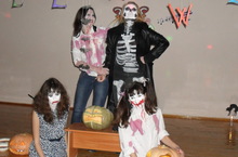 Наши старшеклассники не остались в стороне. 25 октября такое мероприятие прошло в актовом зале школы. Учащиеся 10 класса украсили его всевозможной «ужасной» атрибутикой: паутиной, скелетами, изображениями ведьм и черных котов, черными свечами и, конечно же, «фонарями Джека», вырезанными из тыкв.