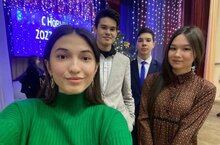 Шайдуллина Алсу, Тирякова Амалия, Усманов Азат и Миннегалиев Ильмир на ёлке Главы для одаренных детей.