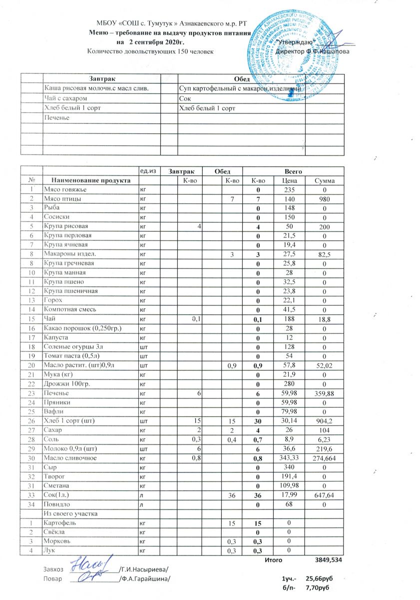 меню-требования на выдачу продуктов питания 2020-2021 год