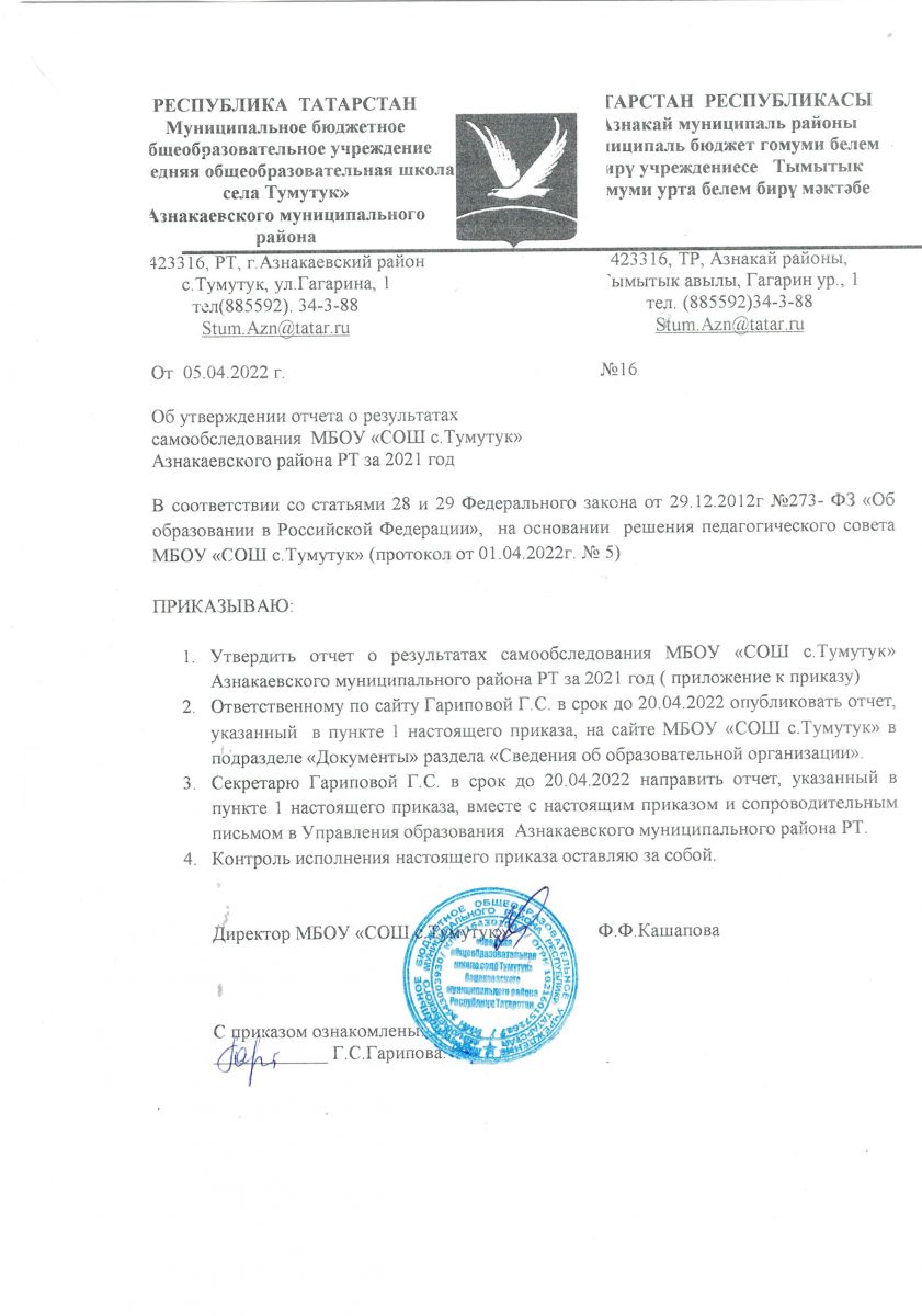 | Короткое название: | МБОУ "СОШ с.Тумутук" Азнакаевского муниципального района РТ |