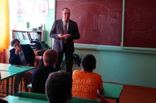 "Экстремизмга юк" декадасы кысаларында мәктәбебезгә Татарстан Дәүләт Советы депутаты Һадиев Таһир Галимҗан улы килде. Укучылар белән очрашу уздырды. Әңгәмә җанлы һәм бик тәрбияви булды.