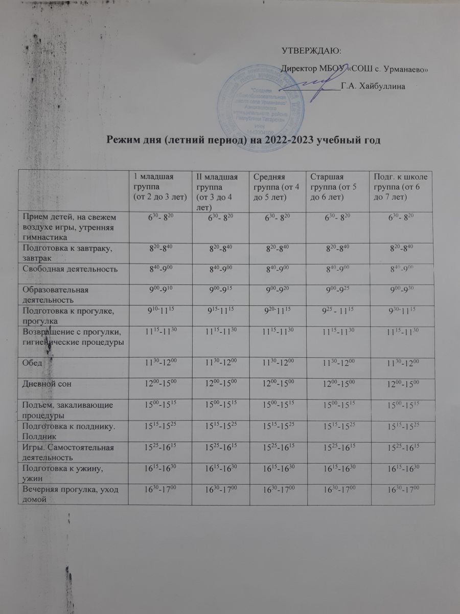 Режим дня (летний период) на 2022-2023 уч.год