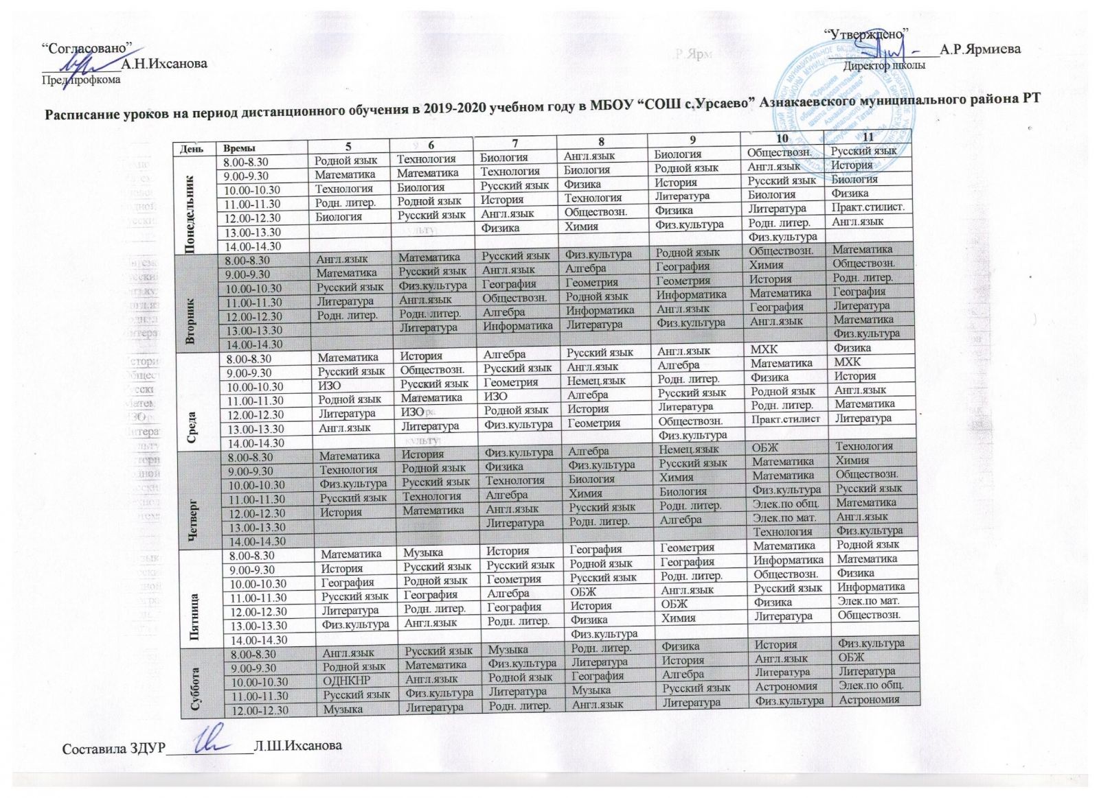 Расписание 5-11 классы на период дистанционного обучения