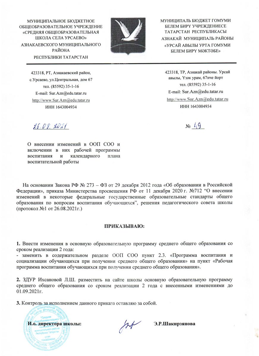 Муниципальное бюджетное общеобразовательное учреждение «Средняя общеобразовательная школа села Урсаево » Азнакаевского муниципального района Республики Татарстан/Татарстан Республикасы Азнакай муниципаль районы муниципаль бюджет гомуми белем бирү учреждениесе "Урсай авылы урта гомуми белем бирү мәктәбе"