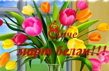 Кадерле хатын-кызлар - әниләр,әбиләр, апалар, сеңелләр! Сезне чын күңелдән 8 Март бәйрәме белән котлыйбыз. Сезгә иң изге теләкләр телибез, якыннарыгызның игелеген күреп яшәргә насыйп итсен сезгә Ходай.Салкын, озын кышлардан соң килгән бу беренче Яз бәйрәме, иң гүзәл бәйрәмнәрнең берсе. Бу бәйрәм сезгә тормыш яме, яшәү көче өстәсен. Бәхет нурында коенып, назга күмелеп, сөеп-сөелеп яшәгез.Бәйрәм белән!!!
