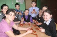 «Георгиевская ленточка» акциясе кысаларында 7 нче класс укучылары һәр ветеранга бүләк ясап Бөек Җиңү бәйрәме белән котлап, чакырулар өләшеп кайттылар.