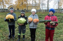 Укучылар үз көчләре белән мәктәп яны тәҗрибә участогында үстергән яшелчәләрне җыеп алдылар. Быелгы уңыш бик мулдан булды