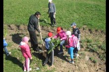 Район мәгариф идарәсенең 23.04.2014 көнге 459 нчы хаты нигезендә мәктәп укучылары " Агач утырту көне" акциясендә катнаштылар.