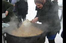 Спорт ярышлары тәмамлангач тәмле пылау белән сыйландык һәм коймак белән чәй эчтек.