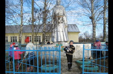IV класс укучылары Бөек Җиңүнең 70 еллыгы уңаеннан сугыш кырында ятып калучылар истәлегенә куелган һәйкәл янын даими чистартып, тәртиптә тоталар.