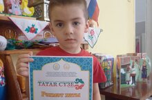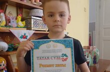 Бакчабызның зурлар төркеменә йөрүче Борханов Салим "Татар сүзе" бәйгесендә катнашып рәхмәт хаты белән бүләкләнде./Салим Бурханов, воспитанник старшей группы нашего сада, принял участие в конкурсе "Татар сүзе" и был награжден благодарственным письмом.