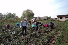 6-9 нчы сыйныф укучылары мәктәп бакчасында үскән уңышны җыялар.