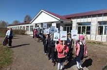 Мәктәп буенча барлык сыйныфлар да "Үлемсез полк" акциясе белән митингта катнашырга әзер.
