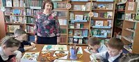 Буген 1 сыйныф укучылары авыл китапханәсендэ кунакта булдылар. Рафилә апа аларны татар халык бизәкләре белән таныштырды.