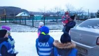 Мәктәбебезнең Яшь инспекторлары балалар белән бәйле юл хәрәкәте һәлакәтләреннән саклау, кисәтү максатыннан иртән балаларын балалар бакчасына транспортта китерүче әти=әниләр өчен профилактик буклетлар өләште.