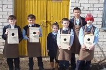 5-6 нчы сыйныф малайлары технология дәресендә сыерчык оялары ясадылар. Технология укытучысы Гайфуллин Г.Г. аларны балта, пычкы тотарга өйрәтә.