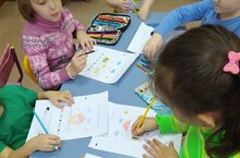 Мәктәпкәчә төркемдә режим моментларында индивидуаль эш алып барыла. Мәсәлән, монда бала "Төсләрне өйрәнәбез" дигән дидактик уен уйный.