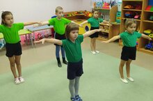 Дошкольники во время утренний гимнастики очень стараются, ведь они знают, что зарядка - это путь к здоровью./Мәктәпкәчә яшьтәге балалар иртәнге гимнастика вакытында бик тырышалар, чөнки алар зарядка - сәламәтлеккә юл икәнен беләләр.