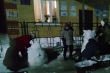 Сегодня коллектив начальной школы -детского сада и родители лепили снежные фигуры/ Бүген мәктәп-бакча коллективы һәм әти-әниләр кардан фигуралар ясадылар.