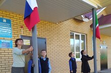С 1 сентября текущего года в школе проходит еженедельное поднятие Государственного флага./ Агымдагы елның 1нче сентябреннән мәктәптә дәүләт флагы күтәрелә.