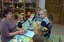 Бүген бакчабызга яңа кызыктыргыч китаплар белән китапханәче Волагжанина .З.С. кунакка килде. / Сегодня с новыми привлекательными книгами пришла в гости библиотекарь Волагжанина.З.С.