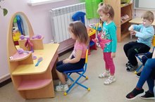 Балаларны чәчтараш һөнәре белән таныштырып, матурлык салонында прическалар ясау буенча сюжетлы- рольле "Чәчтараш" уены уйналды.
