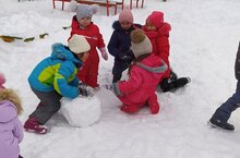 Детям очень нравится зимой на прогулке./ Балаларга кышын саф һавада уйнау бик ошый.