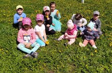 Дети очень рады первым цветочкам весны./ Балалар беренче язгы чәчәкләрне күрүгә бик шат.