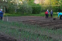 Начались садовые работы. Работники вышли на огород делать градки, сеять семена, рассаживать саженцы.