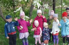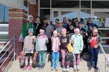 Дошкольники ходили на экскурсию по родной деревне и любовались весенней природой./ Мәктәпкәчә төркем балалары авыл буйлап экскурсиягә чыктылар һәм язгы табигать белән хозурланып йөрделәр.