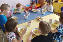 Детям дошкольной группы очень нравится обед в детском саду./ Балаларга балалар бакчасындагы төшке аш бик ошый.