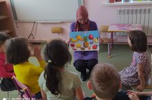 В рамках недели школьного питания дошкольники провели беседу на тему "Полезные витаминки"/ "Мәктәптә файдалы туклану" атналыгы кысаларында балалар белән "Файдалы витаминнар" дигән темага әңгәмә узды.