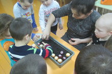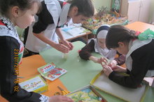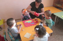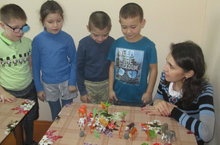 Мәктәпкә хәзерлек төркемендә тәрбияләнүче балалар тәрбиячеләре Гөлфия Хәйдәровна белән бик теләп рус телен өйрәнәләр.