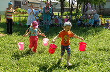 Мәктәпкә әзерлек төркеменең әти-әниләре балалар һәм бакча хезмәткәрләре өчен табигать кочагында күңелле ял оештырдылар. Авылыбызның иң матур урынында җыелып, балалар белән булган кызыклы вакыйгаларны искә төшердек, туп белән төрле хәрәкәтле уеннар уйнадык, хуш исле үләннәр белән самоварда чәй кайнатып эчтек. Ару-талуларны оныттырып, балачакка кайтарып мавыктыргыч ял иттергәнегез өчен, әти-әниләр, зур рәхмәт сезгә!