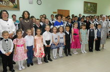 Мәктәпкә хәзерлек төркемендә тәрбияләнүче балалар бүген укытучыларны һөнәри бәйрәмнәре белән котладылар. Нәни дусларыбызның җырлары, биюләре, изге теләкләре укытучылар күңеленә үтеп керде.
