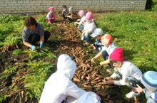 Зурлар һәм мәктәпкә әзерлек төркеме балалары җәен дә үз участокларында бик тырышып эшләгәннәр иде. Менә хәзер шул хезмәтнең нәтиҗәсе: алар үстергән кишерләр зур булып үскәннәр, тәмле булып пешкәннәр. "Үзең үстергәч тәмлерәк тә әле ул",- дип, алар уңышны җыярга да булыштылар.