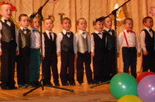 Кечкенәләр төркеме малайлары "Солдатта булган диләр" җыры белән тамашачыны сөендерделәр.
