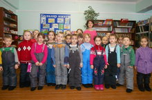 Мәктәпкә хәзерлек төркемендә иң матур традицияләрнең берсе ул - китапханәгә бару. Бу юлы да ктапханәче Әнисә апабыз безне яңа китап-журналлар, Җиңүнең 70 еллыгына багышлап төзелгән стенд белән каршы алды. Без дә үз чиратыбызда сынатмадык: "Минем гаиләм" темасына рәсемнәр ясап, шигырьләр сөйләп бүләк ясадык.