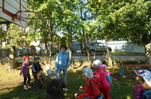Бүген, Республика көне уңаеннан, бакчабызда зурлар төркеме арасында спорт ярышлары булды. Балалар үзләрен төрле ярышларда сынадылар. Аларга иң ошаганы баскетбол кәрзиненә туп ату булды.