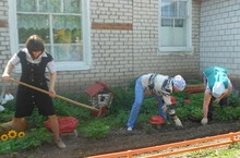 Территориядәге бакчаларга чәчәк үсентеләре утыртабыз. Георгин, астра, циния, сальвия, кыңгырау, виола, бархатцы чәчәкләре безнең бакча балаларын җәй буенча сөендерер.
