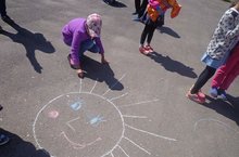 1 нче июнь көнне мәктәбебездә "Кояшкай" мәктәп яны ял лагеры эшли башлады. Балаларны яклау көне уңаеннан балалар өчен төрле уеннар оештырылды. Балалар үзләре асфальтка матур-матур рәсемнәр ясадылар. Көн бик күңелле үтте.
