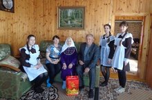 Бөек җиңүнең 71 еллыгы уңаеннан авылыбызның бердән-бер сугыш ветераны Хөснетдинова Нурҗиһан апаны авыл советы җирлеге рәисе Хакимов Сәйдәш Шамсиевич һәм бер төркем укучыларыбыз бәйрәм белән котлап кайттылар.